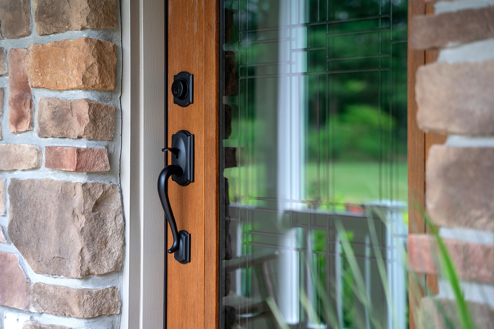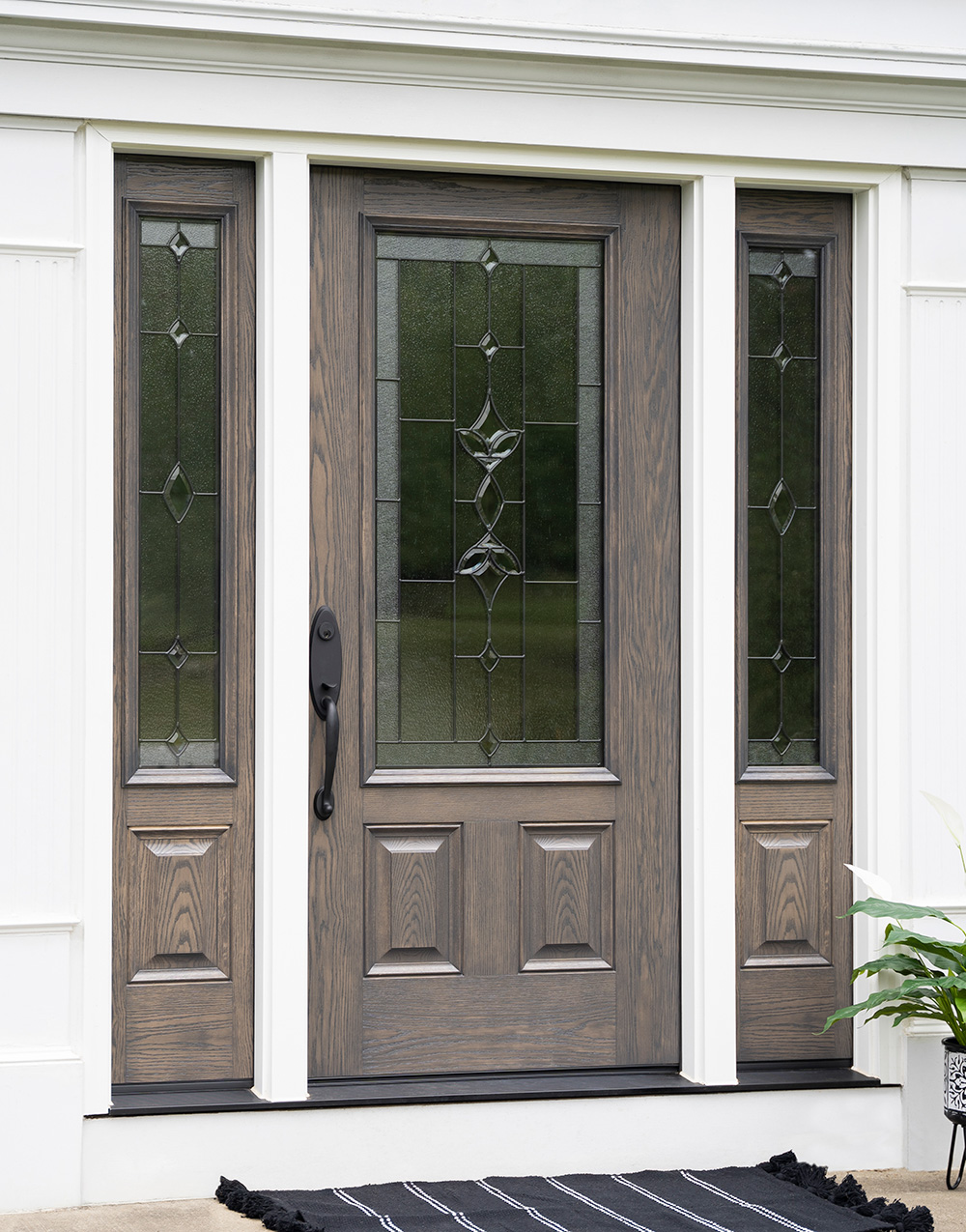 Personalize your entryway with a wide selection of door styles, panel configurations, and decorative glass inserts. ProVia offers an array of art glass designs, from classic beveled patterns to modern geometric styles, plus privacy glass and internal blinds for added functionality. Sidelites and transoms can be combined to create a grand entrance with abundant natural light.